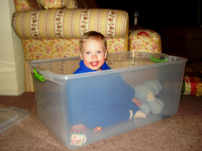 For my James, it is the little things in life that mean the most. A new tub to store his toys in, for instance. I asked him to pick up all of his toys and put them in the tub. He did this... Almost got it.... I'm nearly there... I made it! And this went on for about 30 minutes. In and out. In and out.